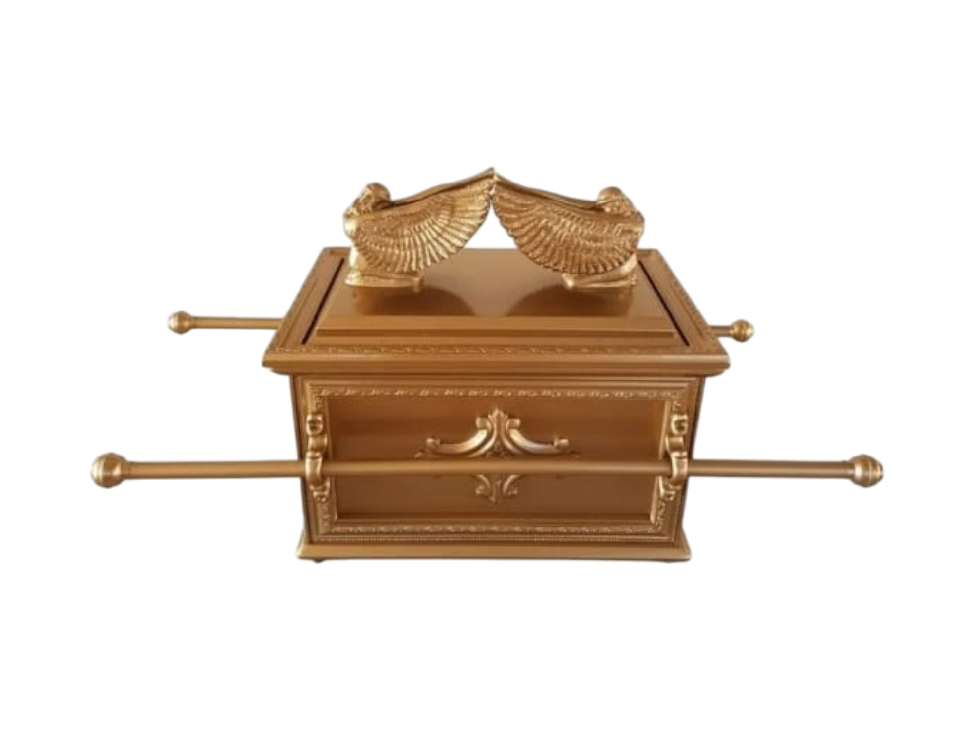 Compacta e imponente, esta Arca da Aliança é ideal para pequenas igrejas, quartos de oração, salas e escritórios. Com 43 cm de comprimento, 30 cm de largura e 52 cm de altura, ela combina presença e praticidade.