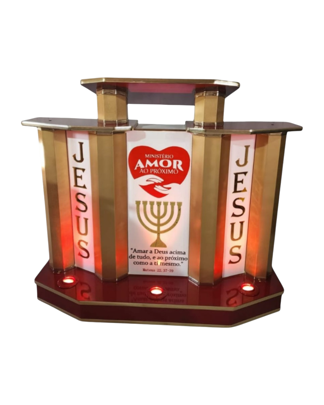 Apresentamos o Púlpito Premium Personalizável, uma verdadeira obra-prima feita para quem deseja impactar, inspirar e transmitir autoridade no altar.